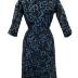 This circa 1950’s blue and black silk floral dress was owned by Lucile Levy Hutton of New Orleans, Louisiana. Hutton was a public educator, author, and active participant in New Orleans music circles. She was a longtime music teacher at Valena C. Jones Elementary School, a piano teacher, and a member of the B-Sharp Music Club among other musical affiliations.