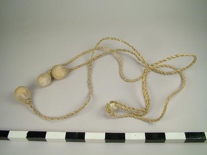 Tan rawhide bola. A weapon used to hunt animals.;Argentina, Guacho items. Identified by Martha Egan, Pachamama Store Owner, Albuquerque, NM; tel: 505.898.7554