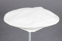 This cover is from the United States Navy Reserve of the United States Navy. It was worn by Lieutenant Commander John Uhl during World War II. This cover is made of white cotton and has the name "J. H. Uhl" stamped on the interior. It would have been worn on a combination cap.
