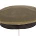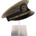 This combination cap, sometimes referred to as a combination cover, is from the United States Navy Reserve of the United States Navy. It was worn by Lieutenant Commander John H. Uhl during World War II (1939-1945). This cap is made of green cotton twill and has a gold chinstrap attached by gold buttons which indicates the owner was a commissioned officer. It also displays an officer's crest on the center front.