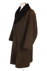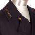 This navy blue conductor's coat is made of wool and is accompanied by a hat that is currently on display at the Grand Rapids Public Museum. It is from the Grand Rapids Railway Company and was worn in 1918 by Earl Raymon Kilmar who was a streetcar conductor.